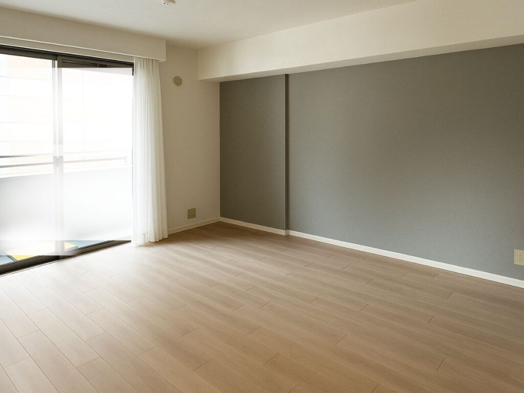 リビングの壁クロスは人気のグレーのクロスを貼りました。