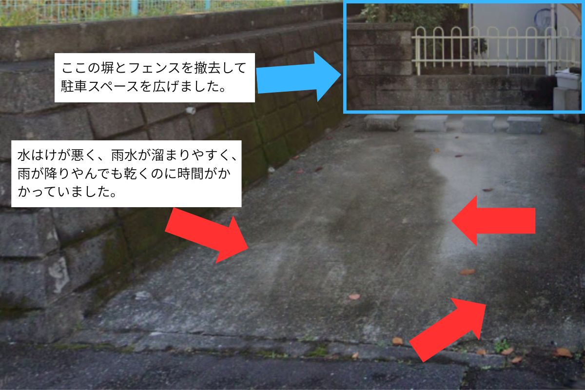 福岡市城南区で、車庫スペースの水はけ改善と奥行きの拡張工事を行いました。