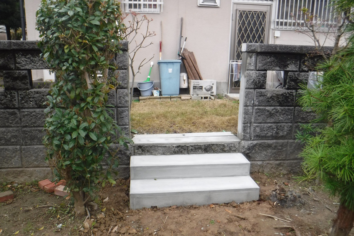 さらに、これまで塀が邪魔になり勝手口まで遠回りしなければならなかった動線を改善。塀の一部を撤去して新たに階段を設けたことで、勝手口への出入りがスムーズになり、荷物の搬入もずっと楽になりました。