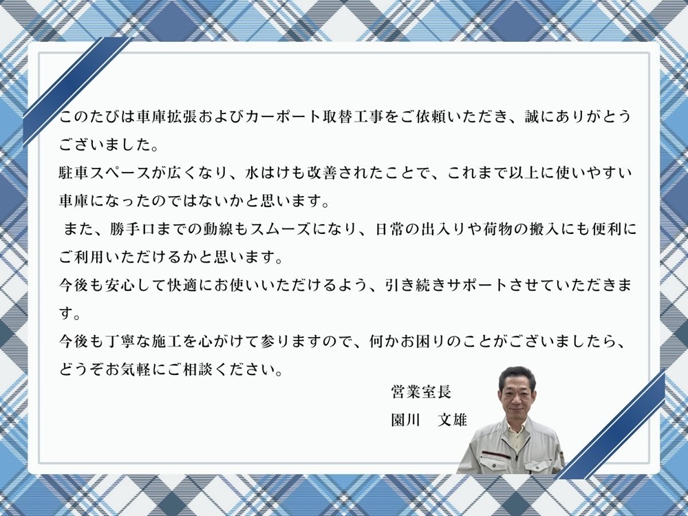 また、車庫との境界には新しいフェンスとブロック塀を設置。外観もすっきり整い、機能的で使いやすい車庫スペースへと生まれ変わりました。