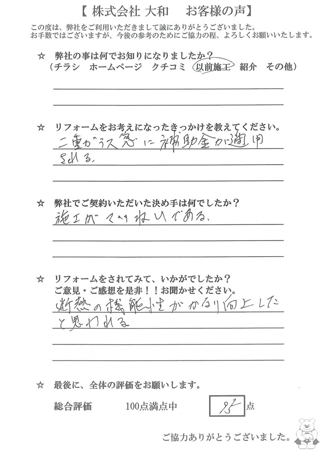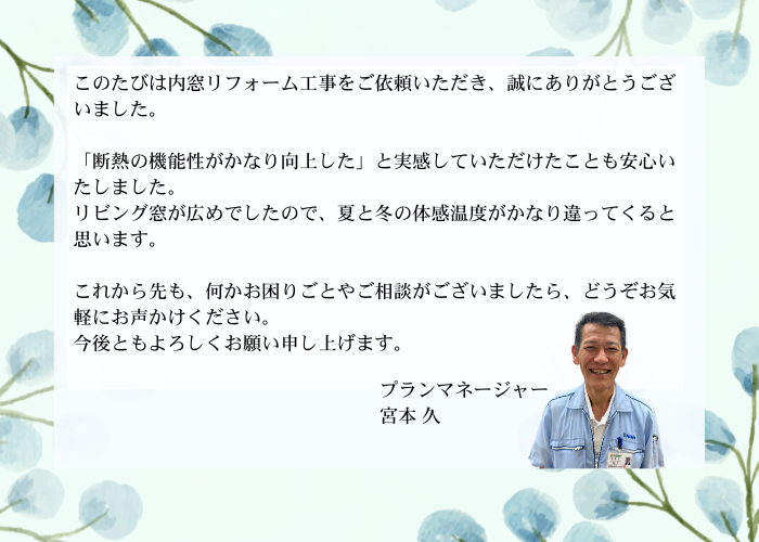 施工後はお客さまから「断熱の機能性がかなり向上しました」と嬉しいお声もいただいています。