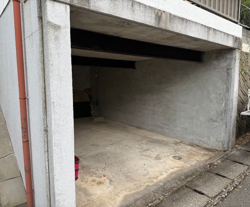 車高のあるお車を停められるようにするため、既存のシャッターを撤去しました。
