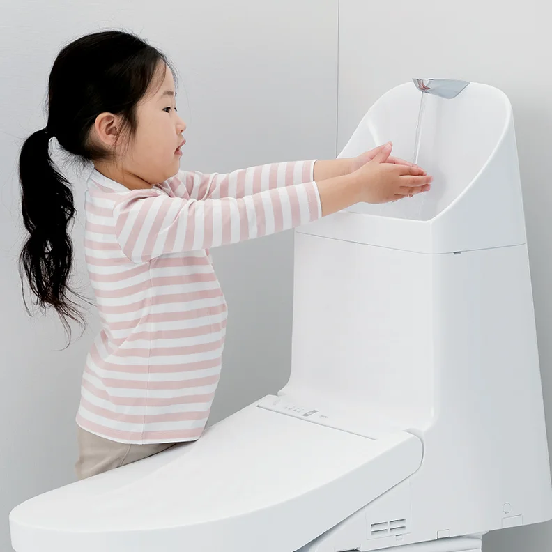 大人から子供まで、しっかり手が洗いやすい高さに設計しています。水はねもしにくく、いつでも気持ちよく洗えます。