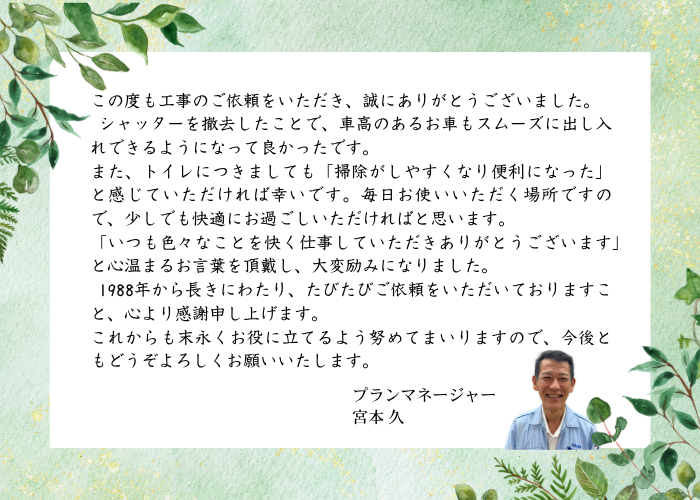 福岡市東区|車庫のシャッター撤去で車高のある車も安心&トイレ交換