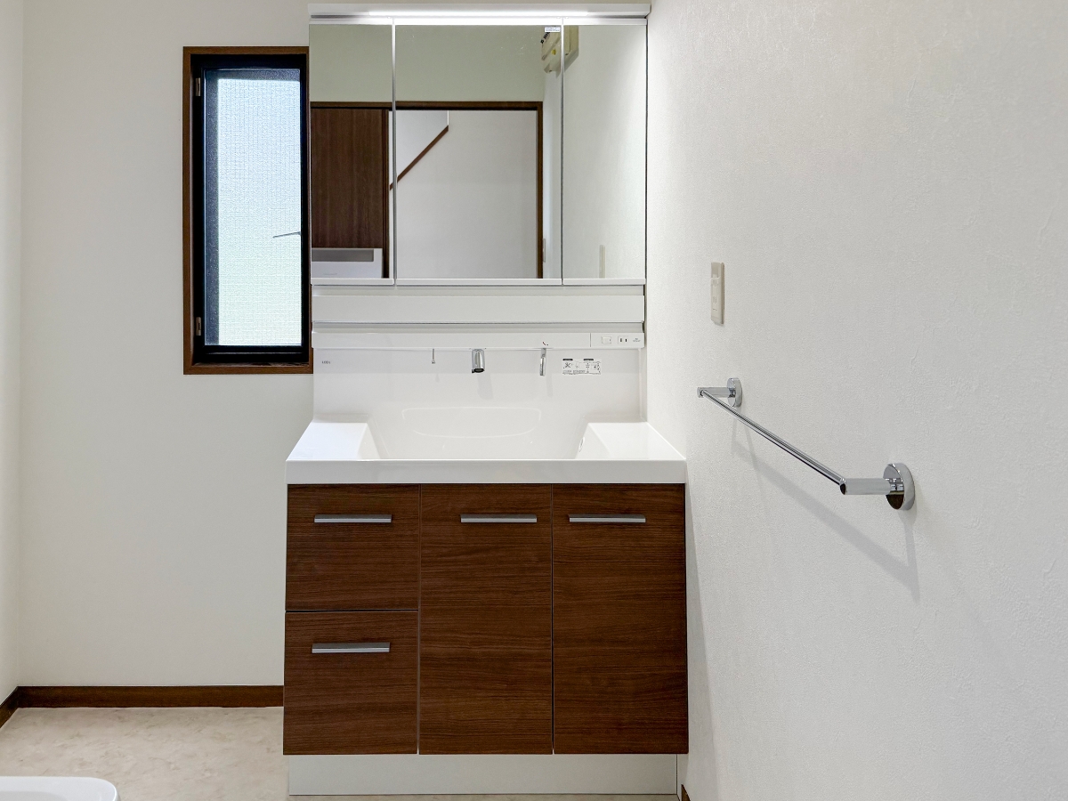 洗面化粧台は、LIXIL 「大和オリジナル洗面化粧台」に交換しました。
