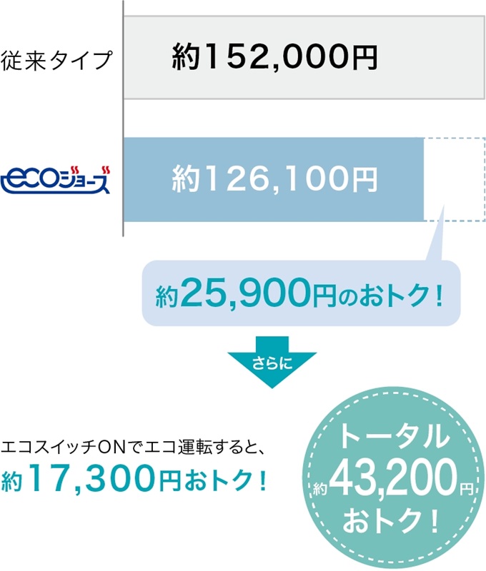 これまで給湯器の燃焼の際に捨てられていた、200℃近くの排気ガスの熱を再利用。排熱を使って予備加熱した水をわかすから、省エネでおトクです!