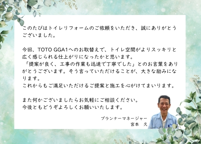 【福岡市南区】タンクレスのように見えるTOTO GGA1で広々トイレに!お湯が途切れない快適リフォーム