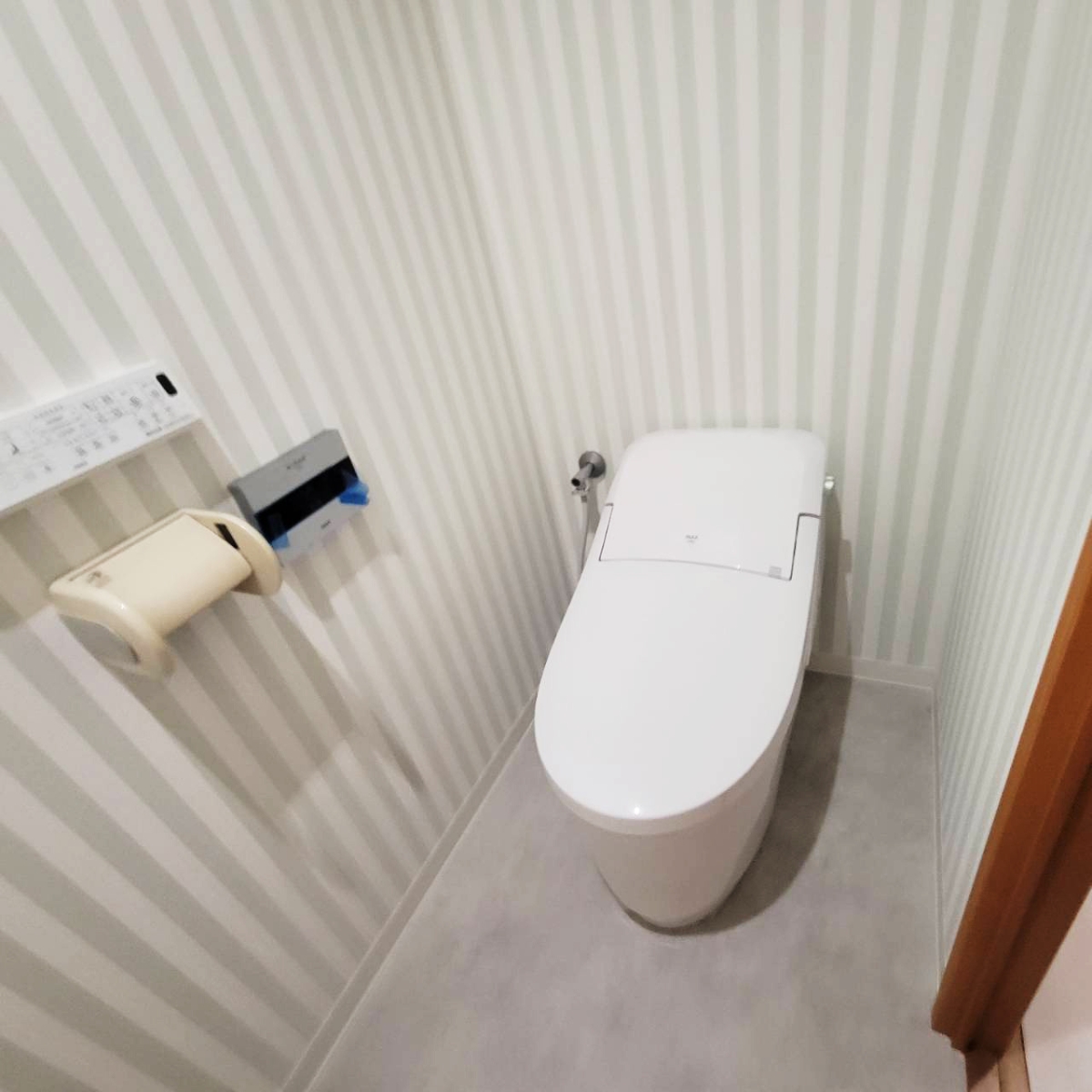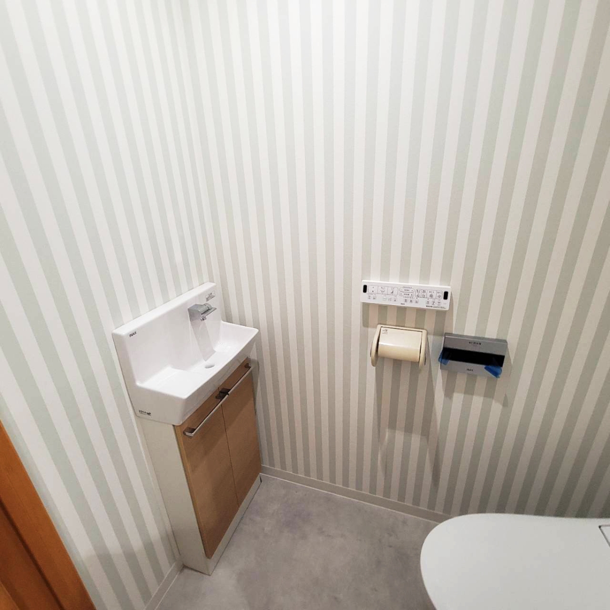 トイレのクロスは、淡いストライプ柄のアクセントクロスになりました。