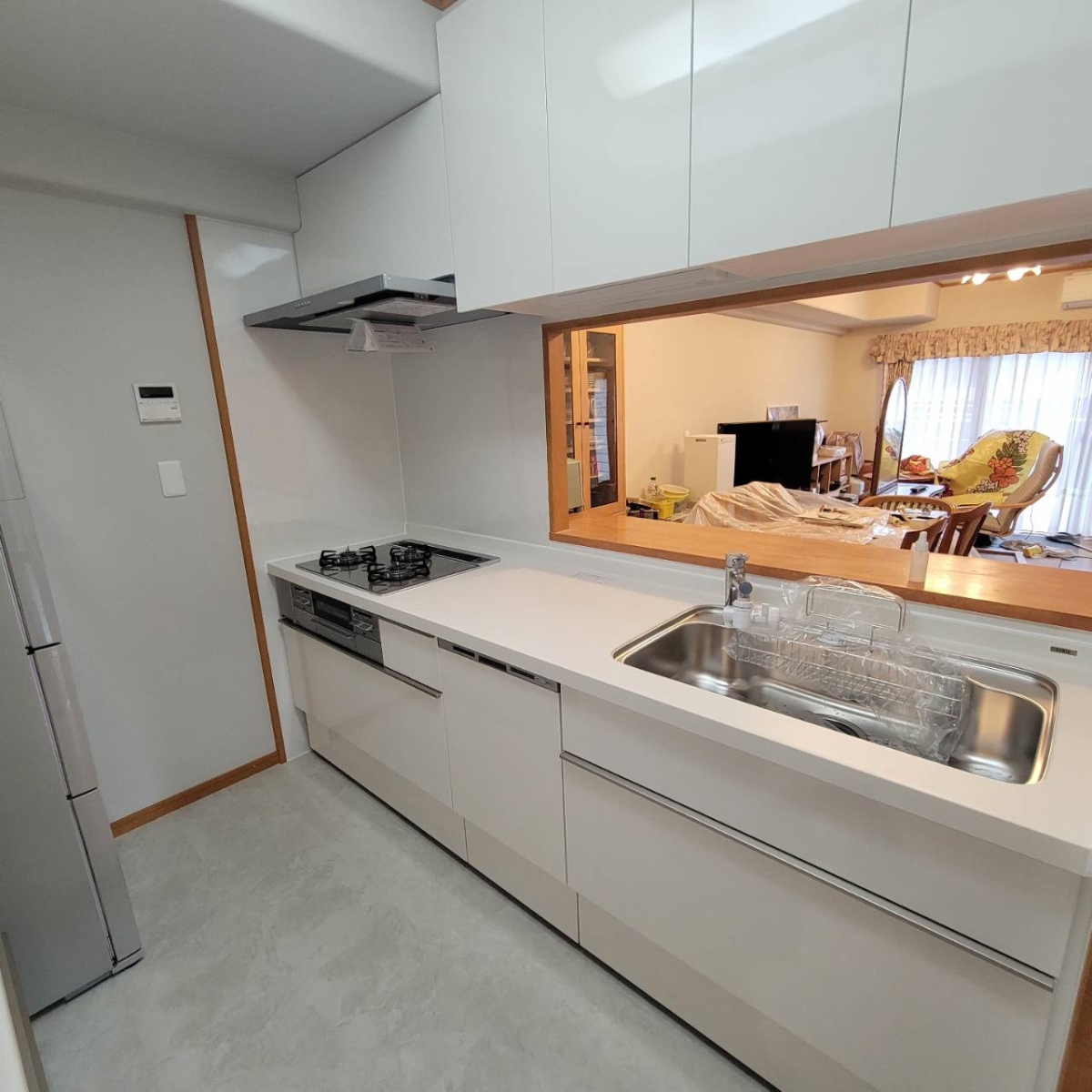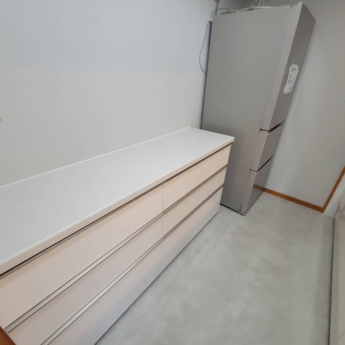 今回のリフォームでは、キッチンとカップボードを 引き出し式収納 に変更したことで、使い勝手が大幅に改善。必要なものが取り出しやすく、片付けやすいキッチンへ生まれ変わりました。