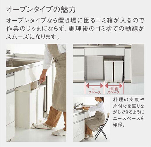 シンク下は扉をなくし、ダストボックスが置けるオープンスペースへ変更。