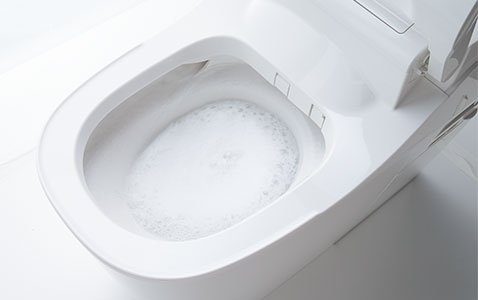 - *洗浄後、便器内をキレイに保つため3時間程、洗剤の泡が残ります。泡が残る時間は洗剤の種類によって変わります。洗剤の泡が出ないようにすることも可能です。