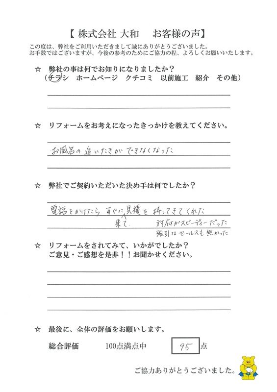 「お風呂のお湯が出なくなった」という不具合をきっかけにご相談いただきました。
