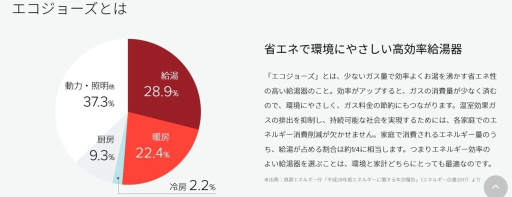 エコジョーズは 排気熱を再利用して効率よくお湯を沸かす仕組みが採用されています。