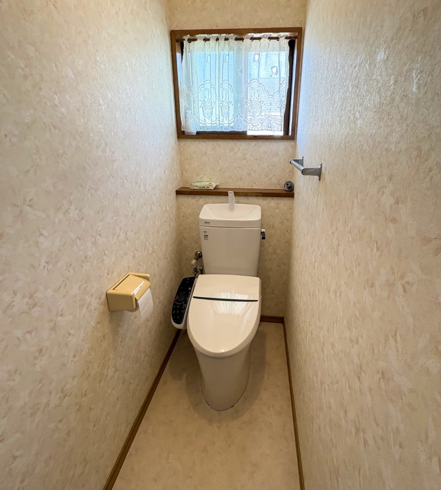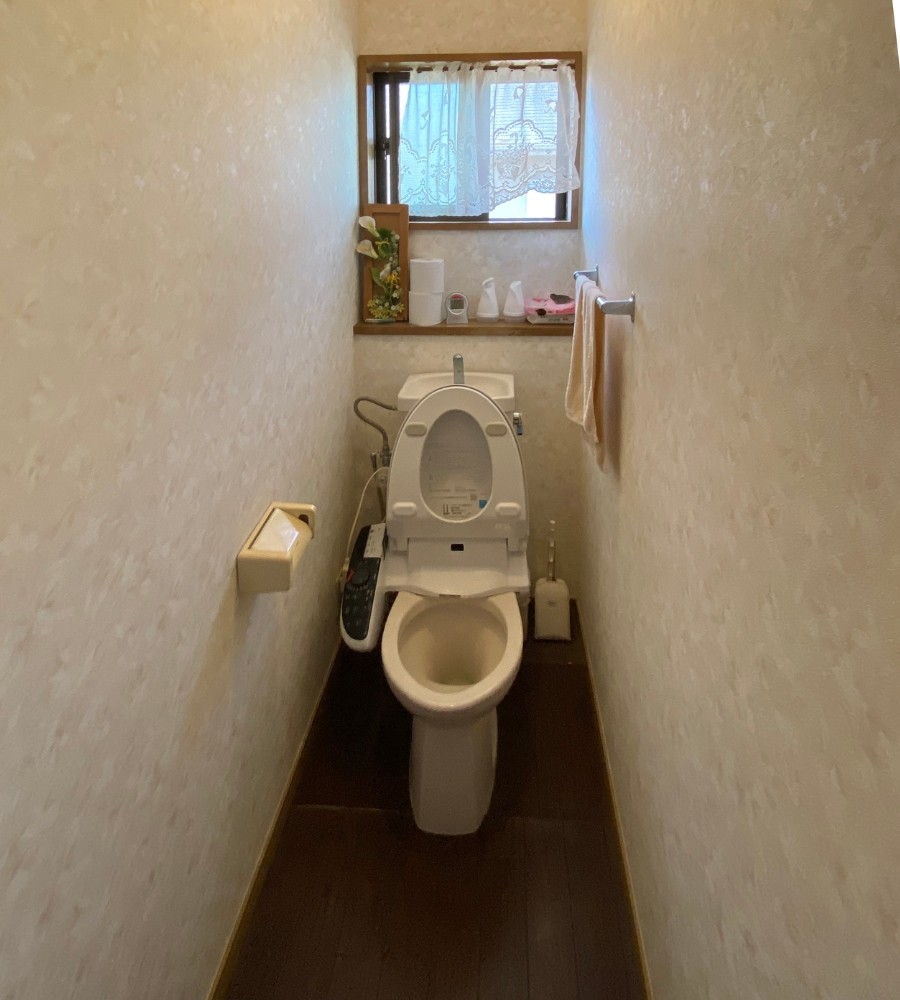 2階トイレはシャワートイレの交換と床のクッションフロアを貼り替え、明るく清潔感のある仕上がりとしました。