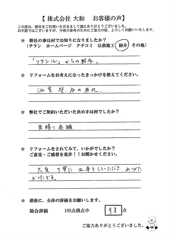 約1年前、在来浴室のタイルが割れてしまったことをきっかけに、ご相談をいただきました。