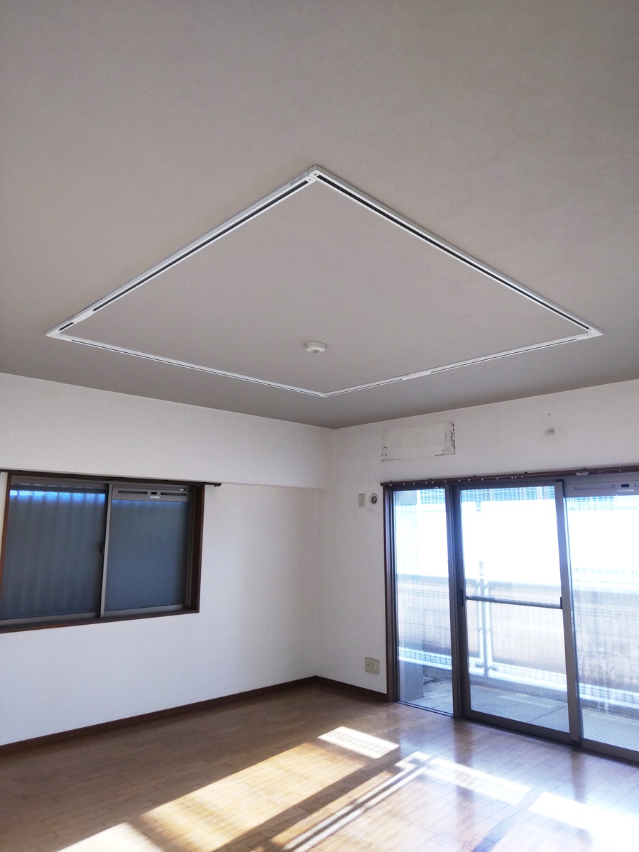 リビングには、天井に四角(ロの字)状のダクトレールを新設。