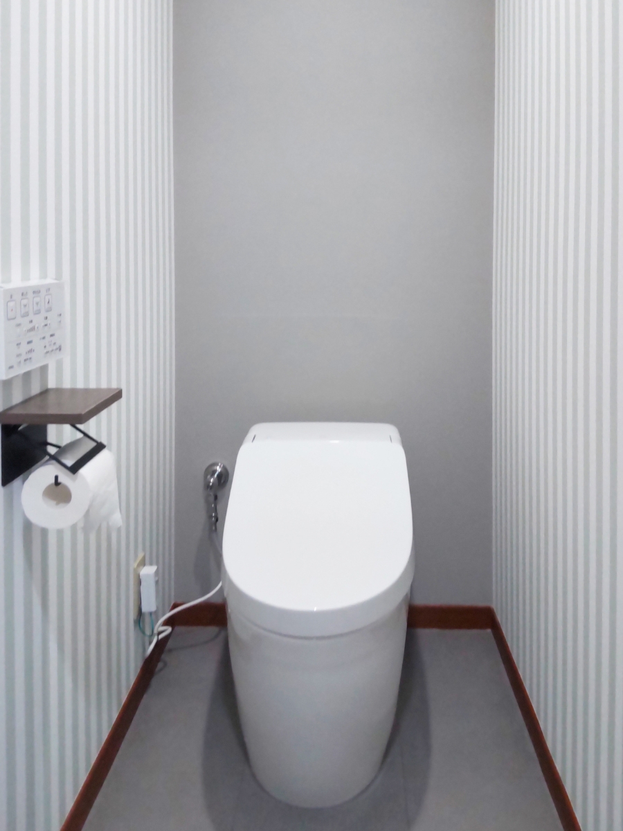 壁クロスはストライプ柄に貼り替え、明るく清潔感のある、おしゃれなトイレ空間に仕上げました。
