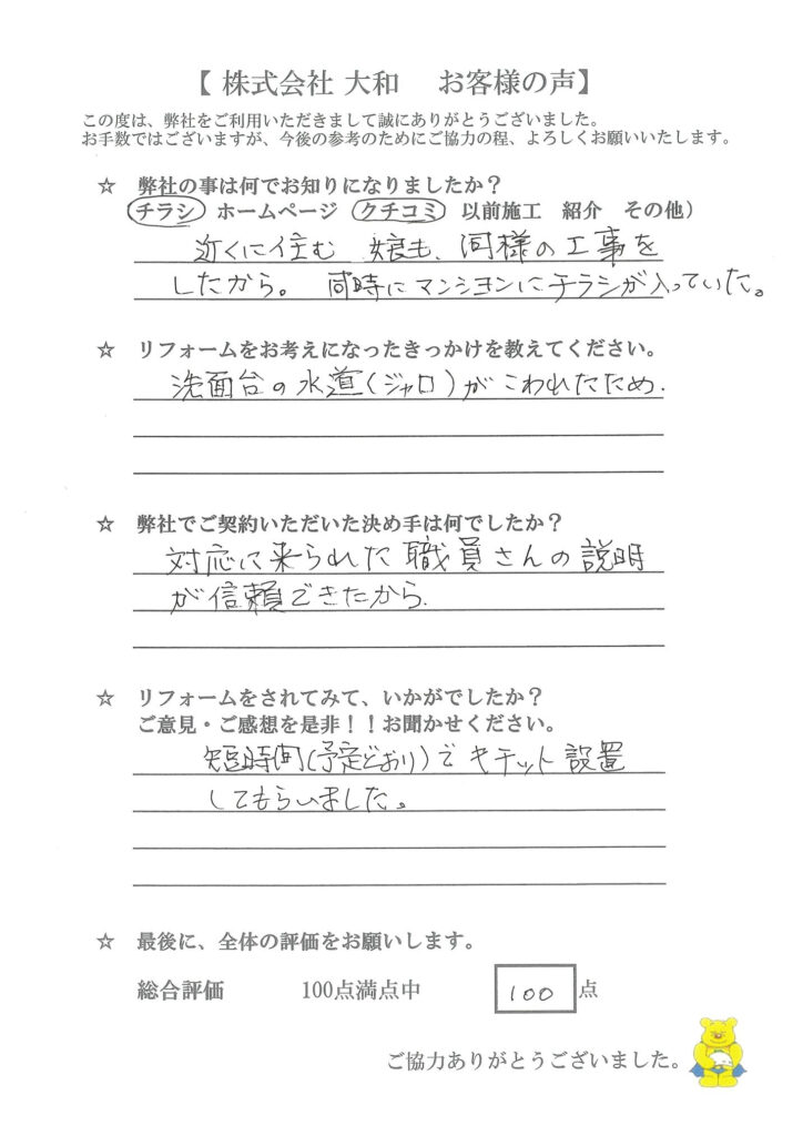 | リフォーム箇所 | 洗面化粧台 |