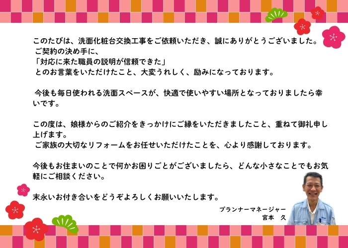 洗面台の水道(蛇口)が故障したことをきっかけに、洗面化粧台交換のご相談をいただきました。