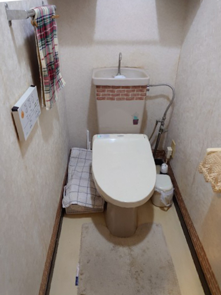 | 仕様材料 | 浴室:LIXIL リノビオV Fタイプ(1418サイズ)(浴室換気乾燥機・高温差し湯付き) トイレ:LIXIL Jフィット W804 I型 H1グレード(ウォルナット)、棚付2連紙巻き器(CF-AA64/BW1)、タオルリング(KF-91A)、三菱電機 VD-13ZSC14、クロス・CF(壁:SP-2578、天井:SP-2546、床:HM-2080) 内窓:YKK AP プラマードU(Low-Eガラス) |