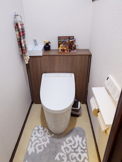 キャビネットの上には小物やインテリアを飾ることもでき、実用性とデザイン性を兼ね備えた、おしゃれなトイレ空間になりました。