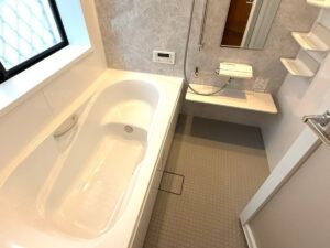 施工前のタイル張りの浴室は、床が冷たく、お手入れもしにくいため、特に冬場は「寒い」「ヒヤッとする」と感じやすい空間でした。