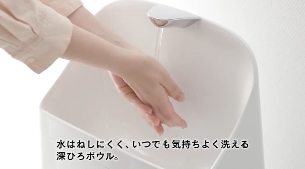 水はねしにくく、しっかり手を洗えるゆとりのある形状で、小さなお子様から大人まで使いやすい設計です。