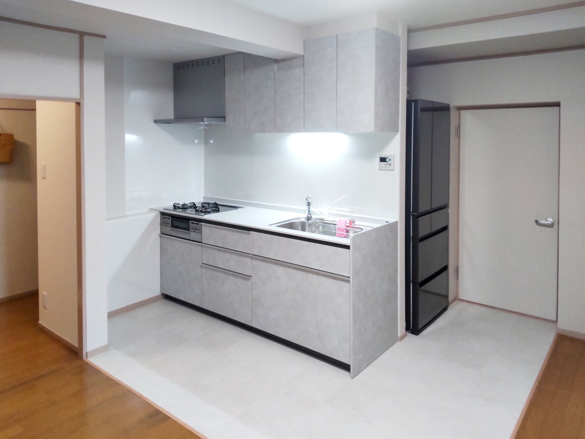 キッチンは LIXIL シエラS(2250) へ交換し、L型キッチンからI型キッチンへレイアウトを変更しました。
