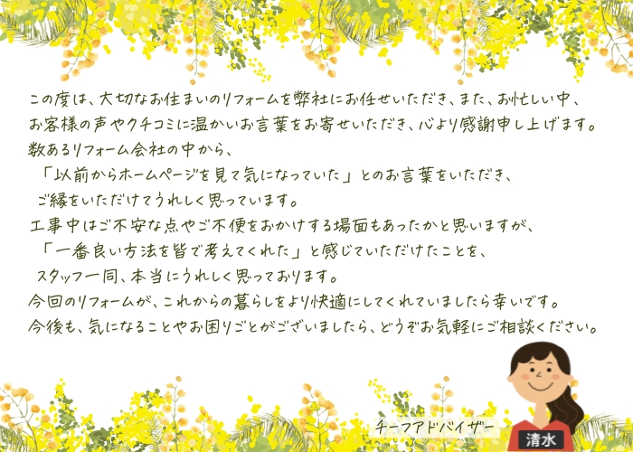 | リフォーム箇所 | キッチン、内装、内窓 |