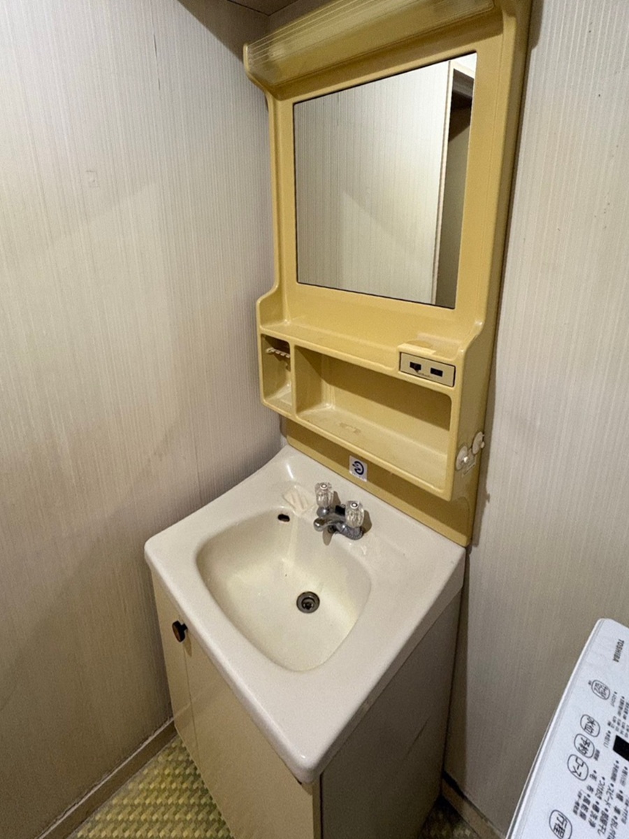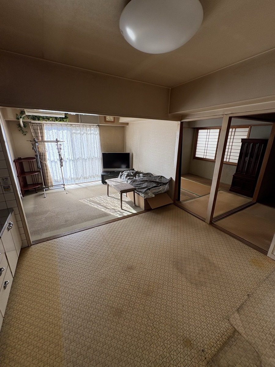 | 仕様材料 | クローゼット 折り戸 1セット、和室側間仕切りドア 2枚引違い 1セット、床根太、床スタイロフォーム、床ベニア貼 、押入れ・引違枠取付1セット、襖貼替、床フロアタイル、クロス クロス( 壁・天井)クッションシート(リビング・廊下・洋室) 洗面:LIXIL ピアラ 1(3面鏡アジャストミラー) LIXIL アメージュ |