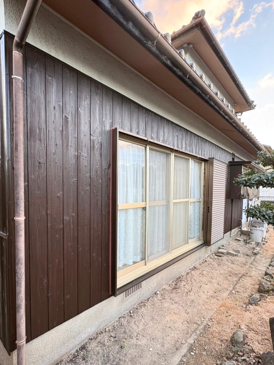 さらに、傷みが目立っていた下見板の一部には【焼杉板】を使用し、2束分を上貼り施工しました。焼杉は、落ち着いた雰囲気に加え、高い耐久性を持つ優れた材料です。