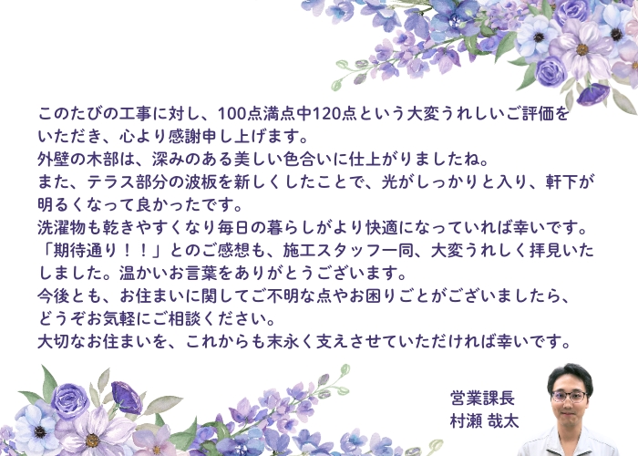 軒下が明るくなり、洗濯物も乾きやすくなりました。