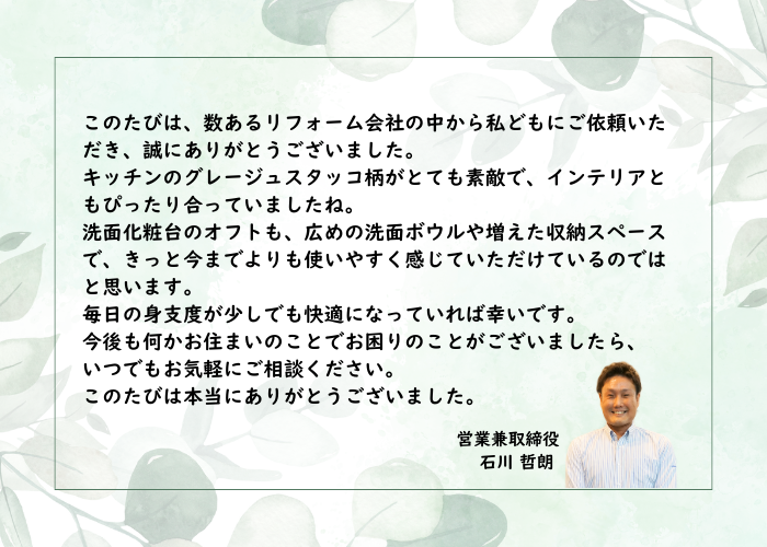 🏠 引越しをきっかけに、キッチン・洗面室を中心に、内装や換気設備まで含めた住まいのリフォームを行いました。