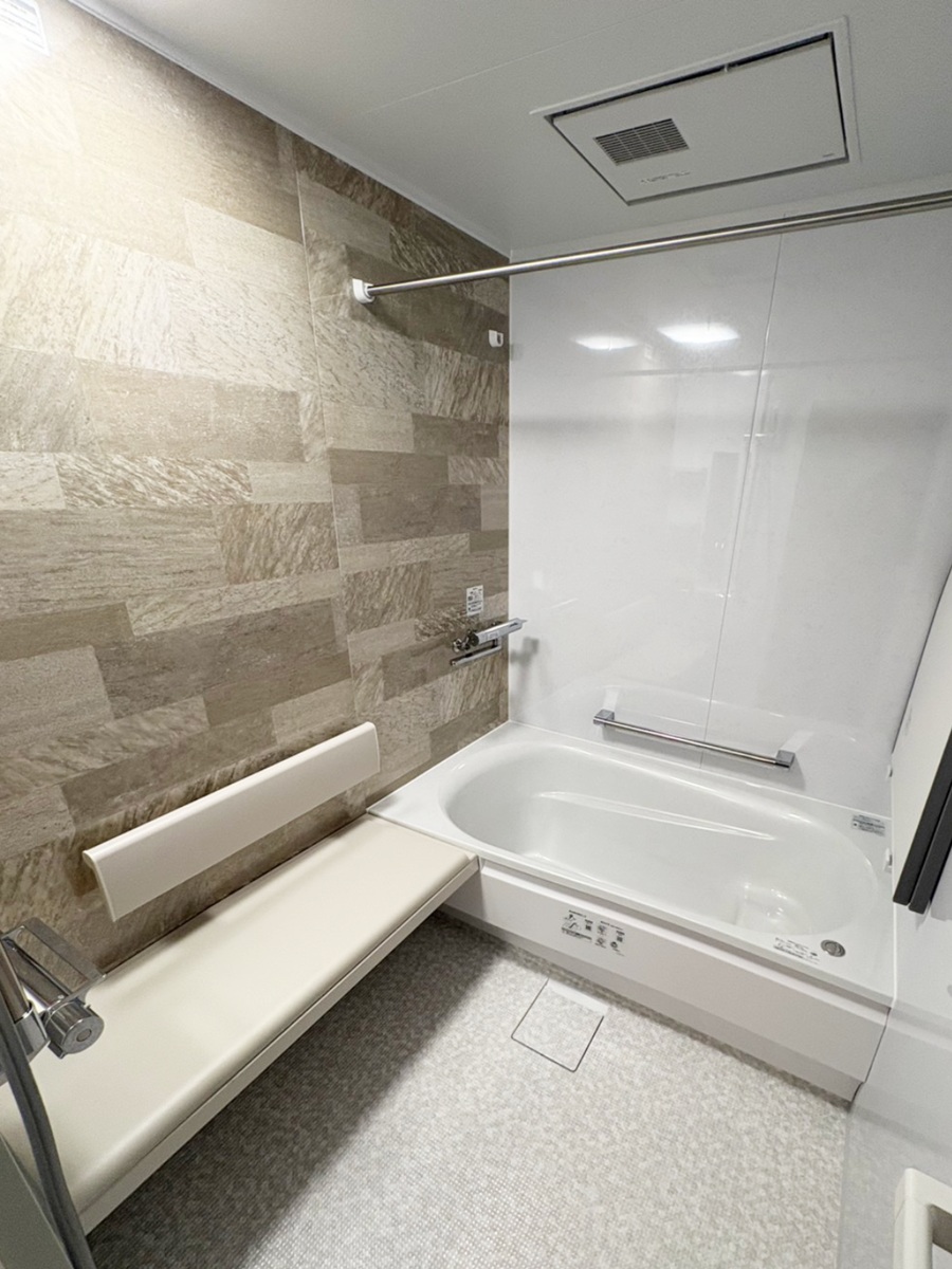 浴室に入ってすぐ腰掛けることができるため、立ったままの姿勢を続ける必要がなく、安心して身体を洗うことができます。備え付けのベンチは固定されているため、椅子のように動いたりぐらついたりしにくく、安定した姿勢を保てる点も大きな安心につながります。