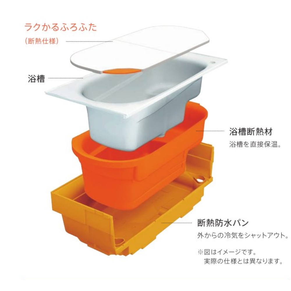 浴槽の周囲を断熱材で覆った二重断熱構造です。