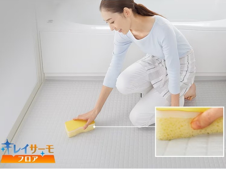 汚れにくい表面処理と形状で、お掃除ラクラク。足元も冷ヤッとしない床。