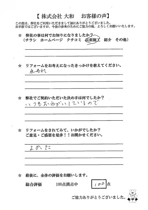 20年来のお付き合いのあるお客様より、水漏れをきっかけに洗面化粧台の交換をご相談いただきました。
