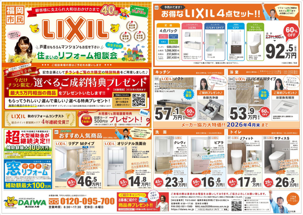 お得なLIXIL商品をはじめ、その他にも各メーカーの商品もお取り扱いしていますので、チラシ裏面も是非チェックしてみてください。