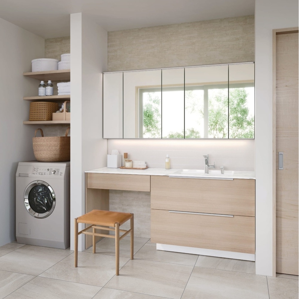 ドレッサー機能を備えたタイプなど、デザインや使い勝手をお好みに合わせて選べるため、自分だけの理想の洗面空間をつくることができます。
